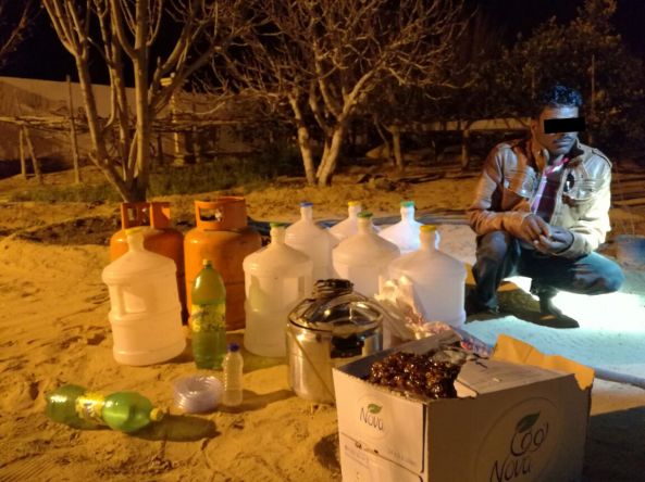 تنومة : تمكن رجال الشرطة وبمشاركة رجال الهيئة في محافظة تنومة من ضبط مصنع للخمور شرق شمال المحافظة يقوم على إدارته عامل أسيوي حيث تم تدمير المصنع وضبط القائم عليه وبعض المواد والأدوات التي تستخدم في تصنيع الخمور.