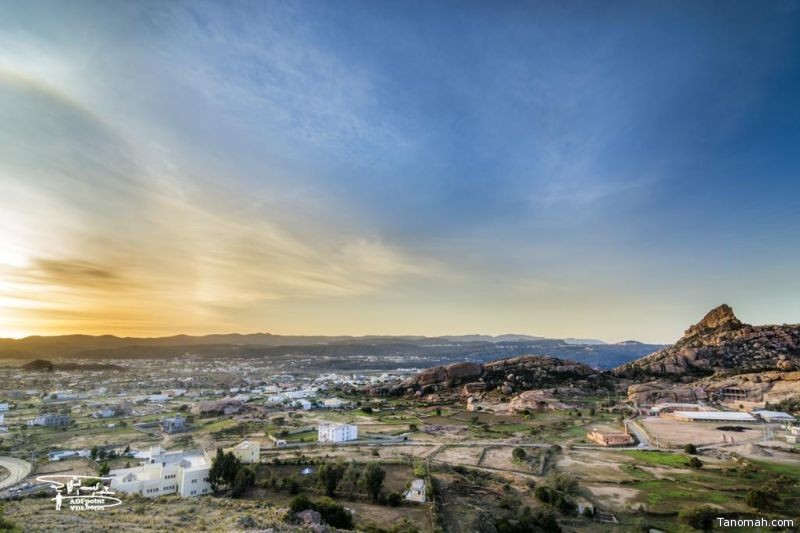 منظر طبيعي لمدينة #تنومة في الصباح الباكر وظهور هالة شمسية في الأفق