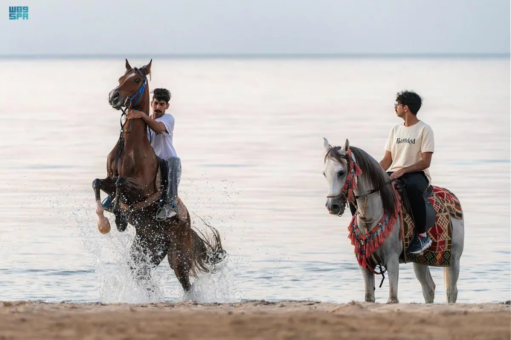 #أملج يلجؤون الخيالة إلى البحر لتدريب خيولهم والاستمتاع به