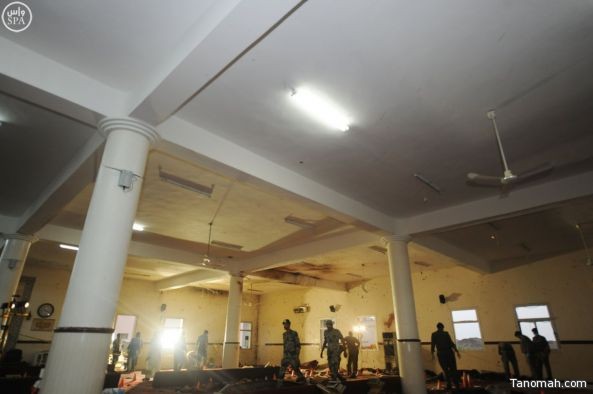 جانب من آثار الاعتداء على مسجد قوات الطوارئ الخاصة بعسير والذي أستشهد فيه 15 من المصلين